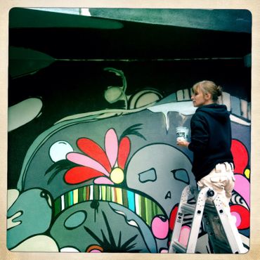 This mural was a permanent installation for Atlanta's yearly Elevate event hosted by the Mayor's Office of Cultural Affairs. The image is rocks, flowers, and geometric patterns inspired by forms found in nature.