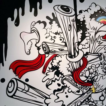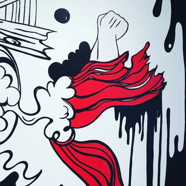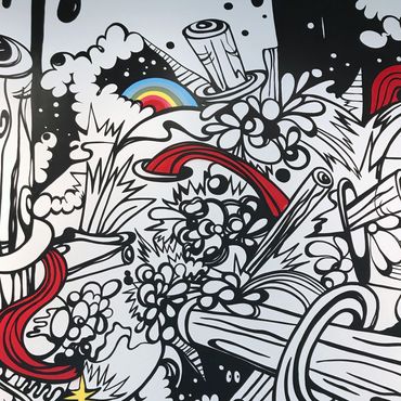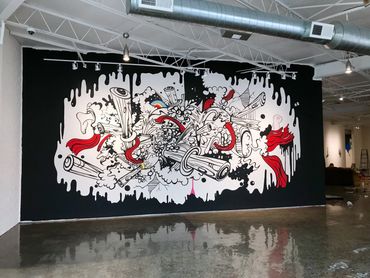 This mural was a temporary installation created in collaboration with Scott Ingram for Til the Lights Go Out, the final exhibition in the gallery space of Hathaway Contemporary, Atlanta GA. All installed work remained in place and was destroyed during the demolition of the building at the end of the exhibition. The imagery in Rumble shows rocks, cut trees, and human limbs reaching out of a compressed cluster resembling an asteroid surrounded by black space. With this image I continue to build on the visual narrative of a landscape in a perpetual state of ruin and renewal. The imminent destruction of the wall at the end of the exhibition punctuates the recurring themes in my work exploring the temporal nature of life and the disintegration of our natural landscape.